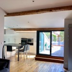 Il comprend: une entrée avec placard, un séjour donnant sur une terrasse de 15 m², une cuisine ouverte équipée d'une plaque induction, d'une hotte aspirante, d'un four, d'un micro-onde, d'un réfrigérateur, d'un congélateur, d'un lave vaisselle, de placards, une buanderie avec machine à laver le linge, deux chambres, une salle d'eau, un WC séparé.